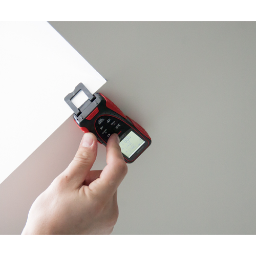 Das multifunktionale Endstück hilft Ihnen, genaue Messungen von Ecken und Schlitzen vorzunehmen. Helles Display mit konstanter Hintergrundbeleuchtung. Das dreizeilige Display mit konstanter Hintergrundbeleuchtung und großen Symbolen ermöglicht das Arbeiten auch bei schlechten Lichtverhältnissen. Lesen Sie die Ergebnisse in jedem Winkel und bei allen Lichtverhältnissen ab.