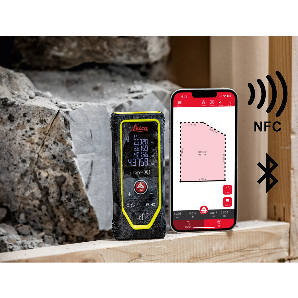 Der Leica DISTO X1 ist ein zuverlässiges Entfernungsmessgerät, das für raue Innenumgebungen entwickelt wurde. Dank seiner robusten Konstruktion aus Gummi und glasfaserverstärktem Kunststoff übersteht er Stürze aus bis zu 2 Metern Höhe und liefert weiterhin genaue und zuverlässige Messungen. Mit Schutzart IP65 funktioniert er perfekt in staubigen oder feuchten Umgebungen und kann problemlos unter fließendem Wasser gereinigt werden. Das Gerät lässt sich mühelos über NFC mit der Leica DISTO Plan App verbinden und ermöglicht so eine schnelle und einfache Datenübertragung, Visualisierung und Dokumentation. Durch die Vereinfachung der Messprozesse und die Verbesserung der Datenorganisation trägt es dazu bei, die Effizienz und Professionalität jedes Projekts zu steigern.