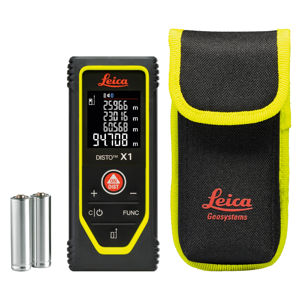 Leica DISTO X1 Laser-Entfernungsmesser; Handschlaufe; Tasche; zwei Batterien; Kalibrierzertifikat Silber; Schnellstartanleitung