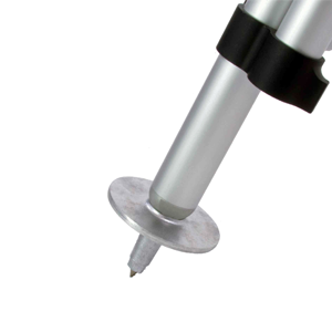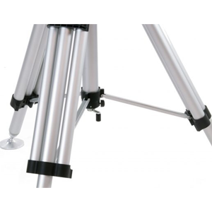 Heavy duty aluminum tripod with self-locking spindle drive at the bottom of the center column.