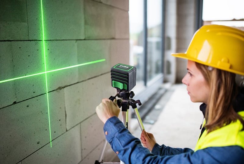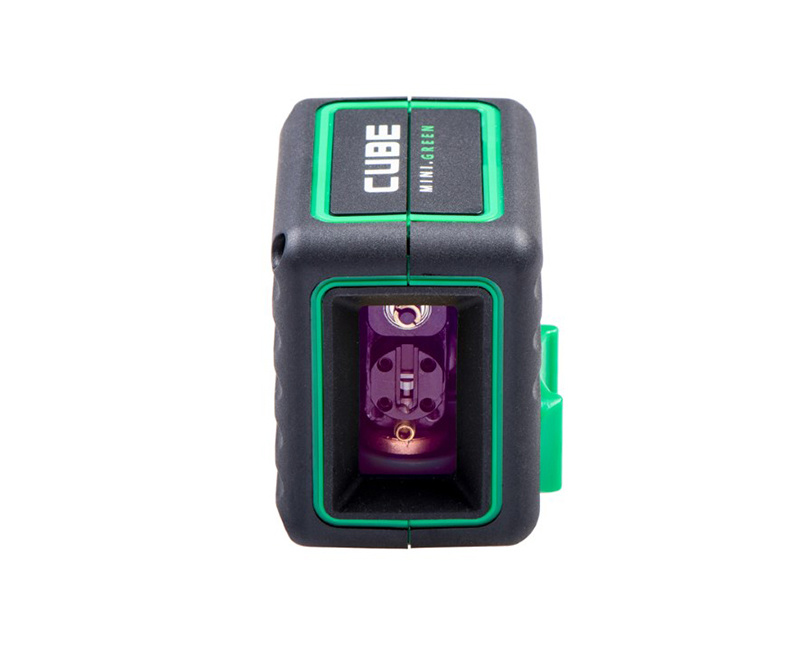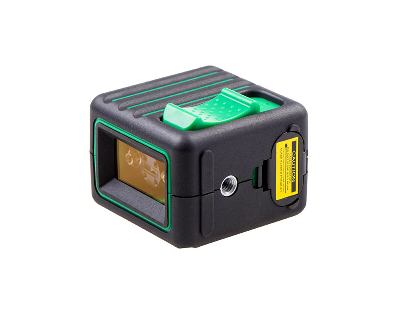 The CUBE Mini Green cross line laser projects two laser lines. One vertical and one horizontal laser line. These laser lines are switched on simultaneously.