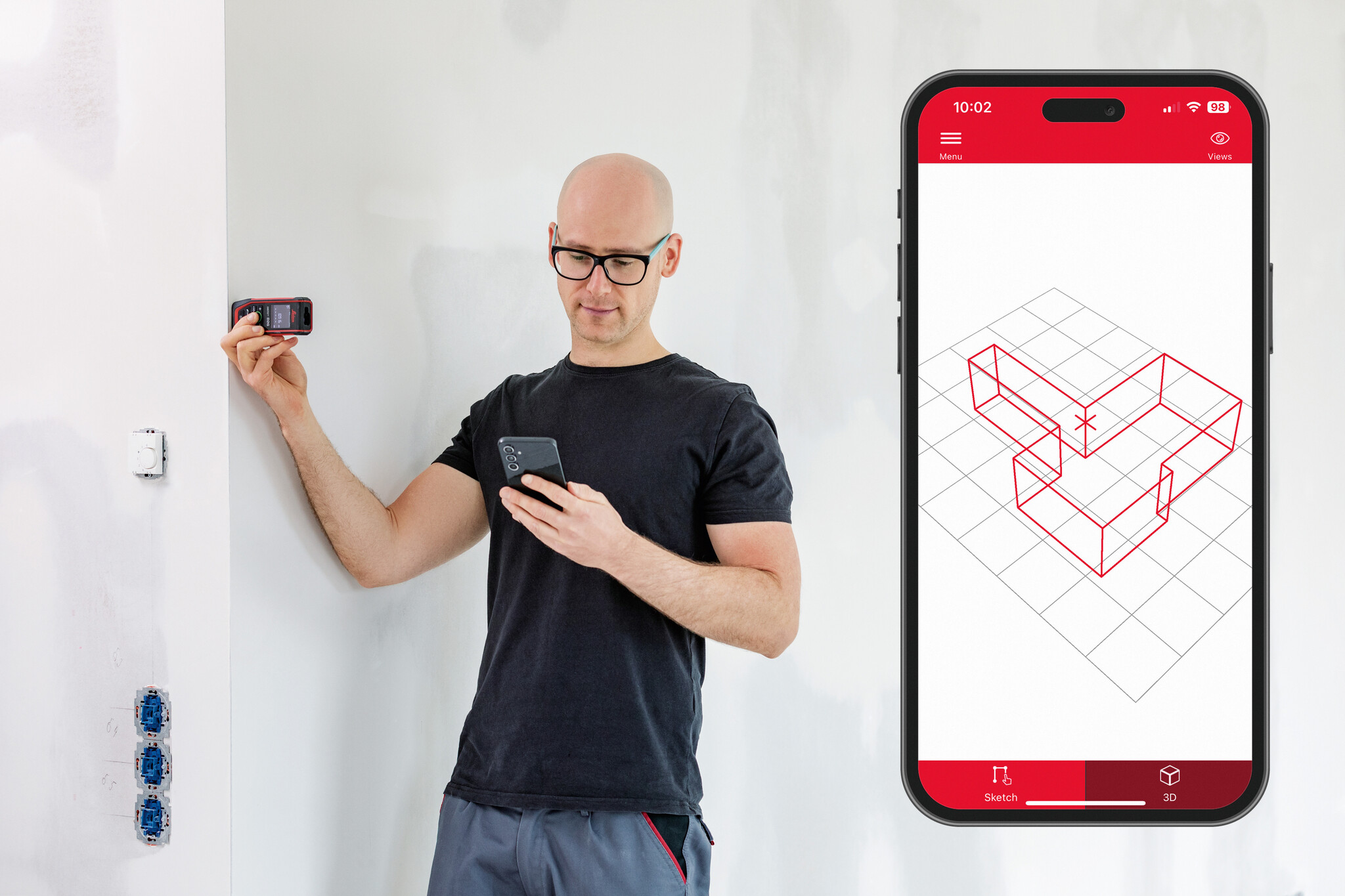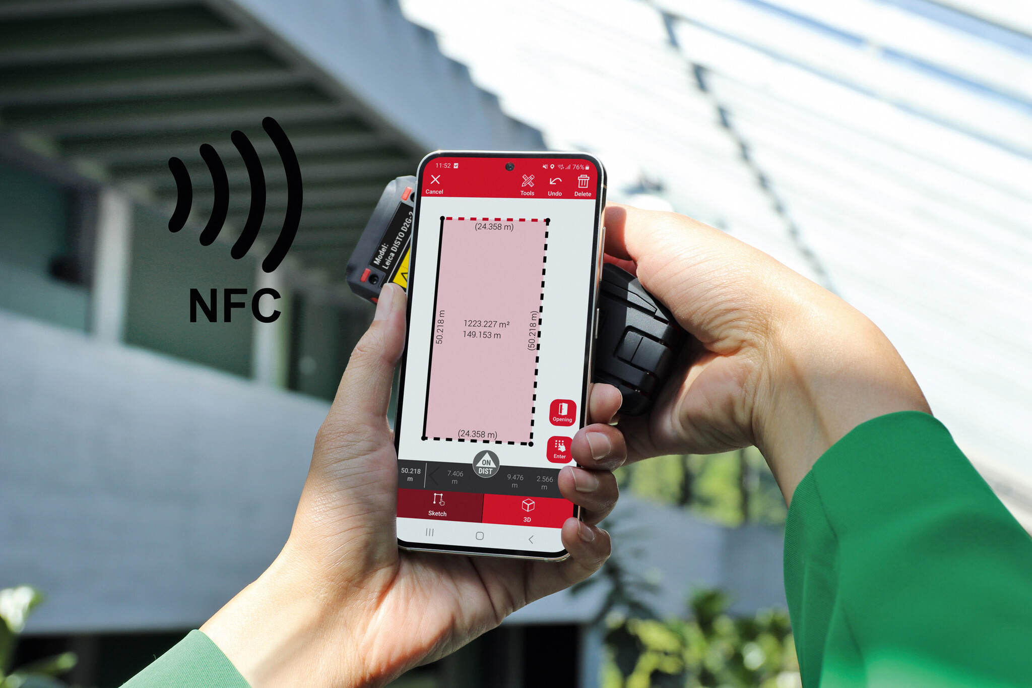 The integration of NFC technology allows seamless connectivity between the laser measurer and the Leica DISTO Plan app, eliminating the need for manual Bluetooth pairing. Simply hold the device to your smartphone to transfer measurement data. Creating scaled floor plans becomes quick and effortless with the Smart Room function in the Leica DISTO Plan app. Simply measure all sides of the room with the digital measure laser in a clockwise or counter-clockwise direction. In Smart Horizontal Mode, the laser distance meter simultaneously measures both distance and inclination to calculate the horizontal distance. This ensures accurate results even when the device is not perfectly level. With its fold-out end-piece, the laser measurement tool ensures reliable measurements from corners and edges. The automatic detection of the end-piece position helps prevent expensive measurement mistakes.