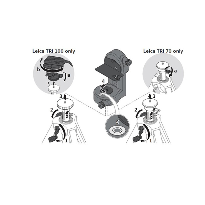Also, the entire movable head can be removed, allowing other Leica adapters to be mounted on it. or place instruments directly on the fixed 1/4" socket.