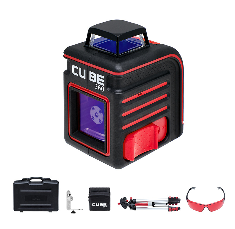 De CUBE 360 kruislaser projecteert 2 laserlijnen. Een verticale en een 360° horizontale laserlijn.