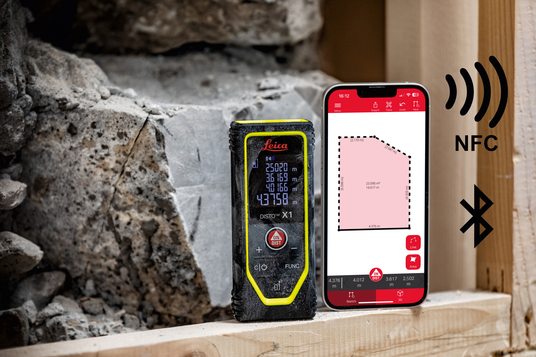 Met NFC kunt u snel verbinding maken met de Leica DISTO Plan-app zonder eerst via Bluetooth te hoeven koppelen. Houd het lasermetingapparaat gewoon tegen uw smartphone om de metingen over te dragen.