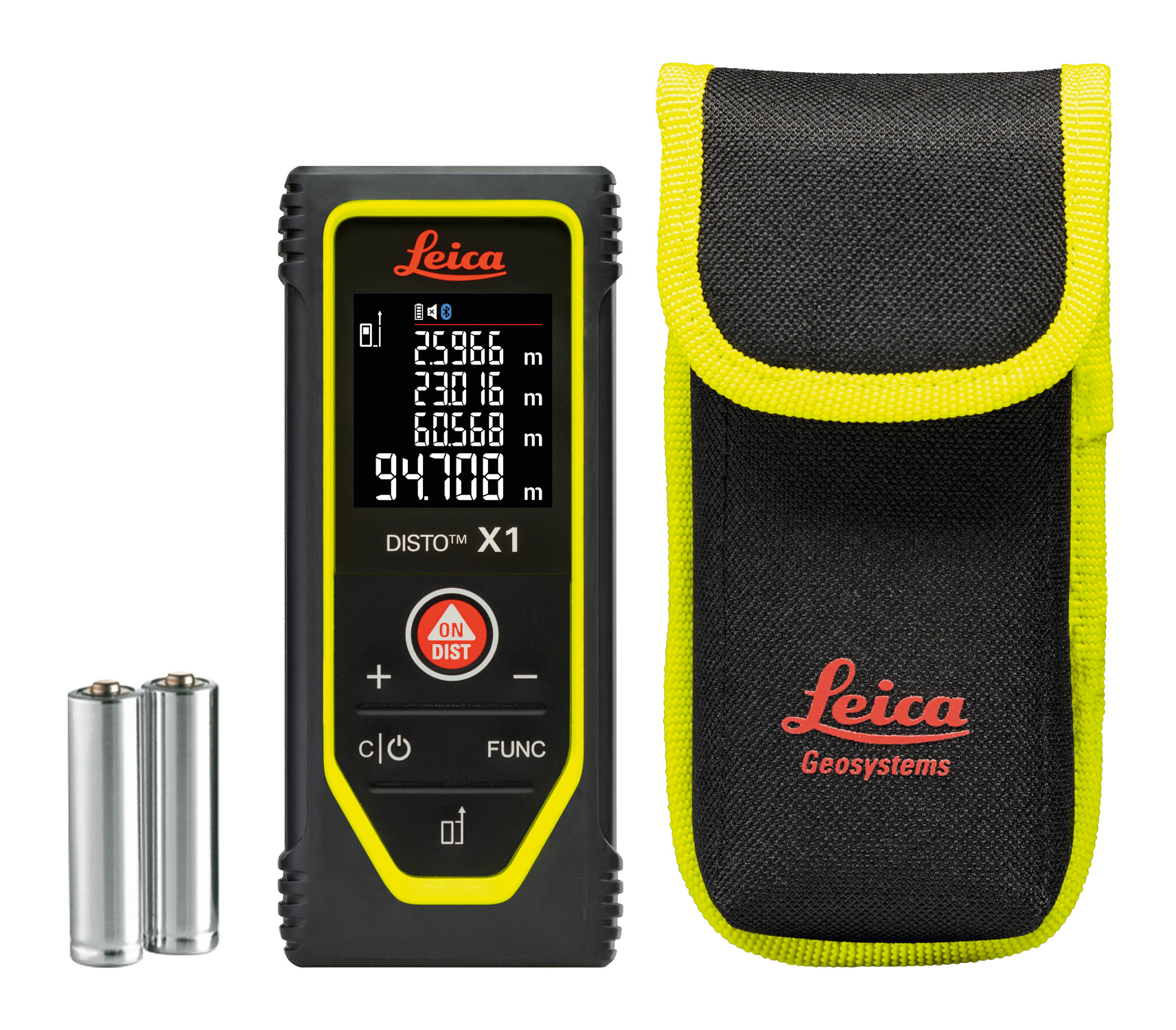 Leica DISTO X1 laserafstandsmeter; handlus; etui; twee batterijen; kalibratiecertificaat Silver; Quick Start