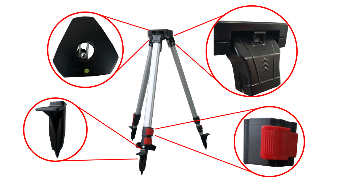 OMTools TRP-142 Bouwstatief van 69-142 cm met platte kop Ø 140 mm, 2,1 Kg transportlengte 75 cm